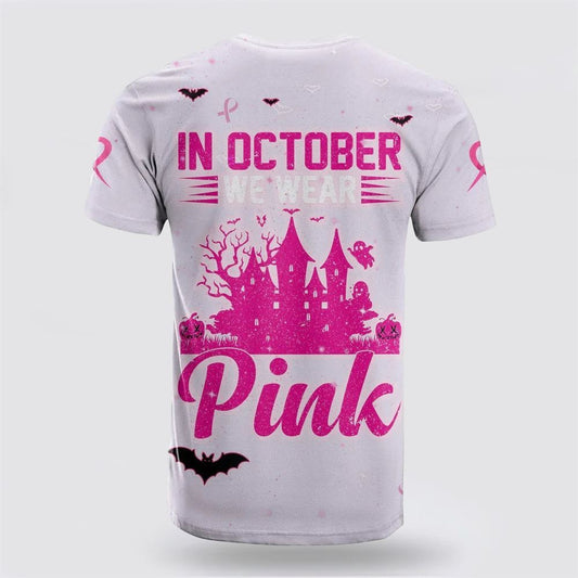 Breast Cancer All Over Print 3D T Shirt In October We Wear PINK Halloween Castle Pink, Breast Cancer Gift Ideas, Unisex T Shirt