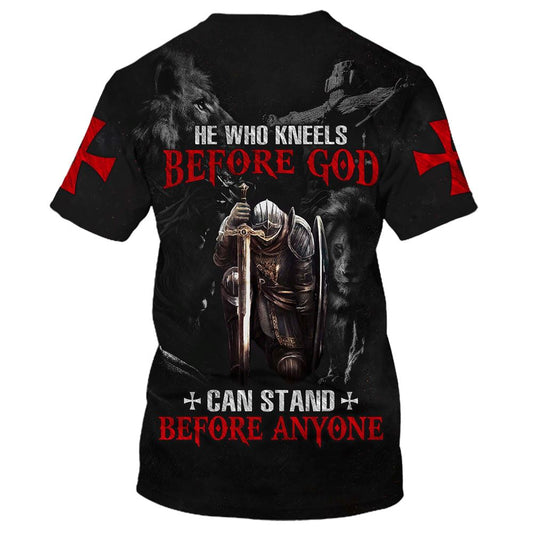 He Who Kneels Before God Can Stand Before Anyone All Over Print 3D T-Shirt, Gift For Christian, Jesus Shirt