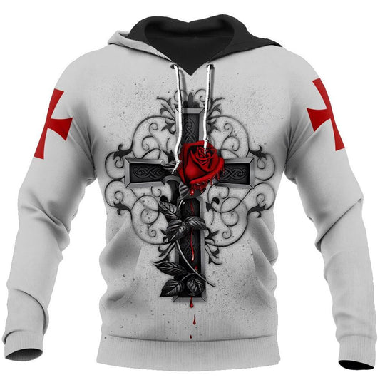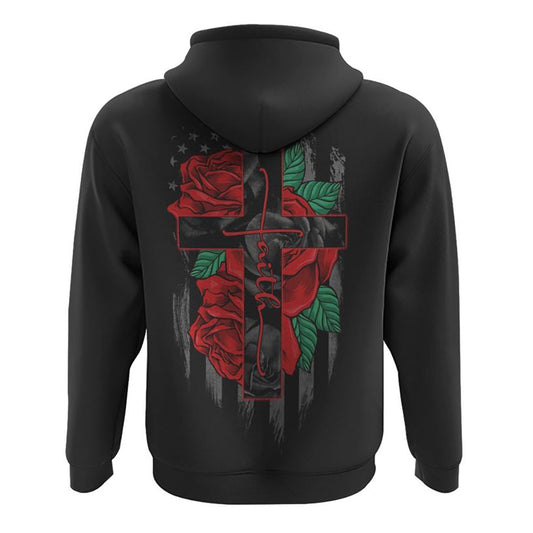 Faith Red Rose Flag All Over Print 3D Hoodie, Christian Hoodie, Christian Sweatshirt, Bible Verse Shirt