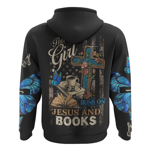 This Girl Runs On Jesus And Books All Over Print 3D Hoodie, Christian Hoodie, Christian Sweatshirt, Bible Verse Shirt