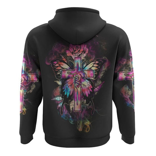 Tie Dye Butterfly Cross Faith With Rose All Over Print 3D Hoodie, Christian Hoodie, Christian Sweatshirt, Bible Verse Shirt
