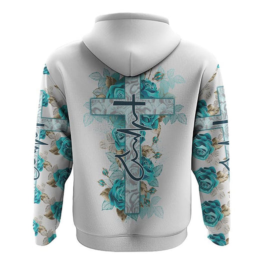 Turquoise Rose Faith All Over Print 3D Hoodie, Christian Hoodie, Christian Sweatshirt, Bible Verse Shirt