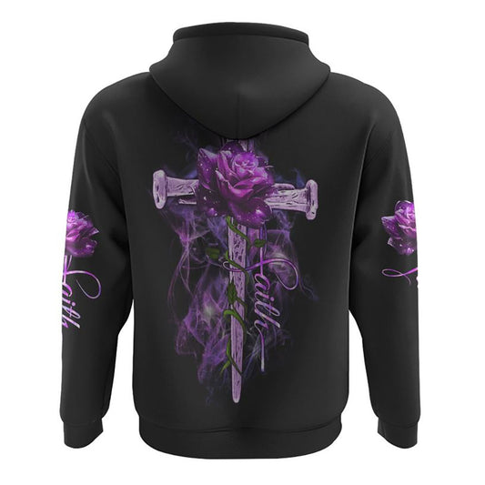 Vintage Cross Purple Rose Smoke Cross All Over Print 3D Hoodie, Christian Hoodie, Christian Sweatshirt, Bible Verse Shirt