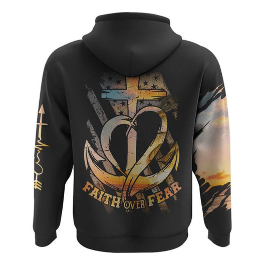 Vintage Faith Over Fear Sunset All Over Print 3D Hoodie, Christian Hoodie, Christian Sweatshirt, Bible Verse Shirt