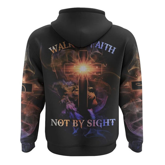 Walk By Faith Not By Sight Lion Cross All Over Print 3D Hoodie, Christian Hoodie, Christian Sweatshirt, Bible Verse Shirt