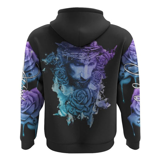 Watercolor Jesus Rose All Over Print 3D Hoodie, Christian Hoodie, Christian Sweatshirt, Bible Verse Shirt