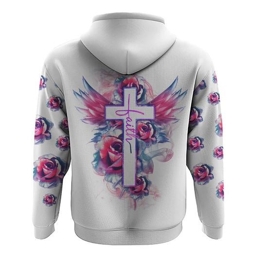 Watercolor Rose Faith Cross White All Over Print 3D Hoodie, Christian Hoodie, Christian Sweatshirt, Bible Verse Shirt