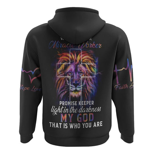 Way Maker Miracle Worker Colorful Lion Faith Heart Beat All Over Print 3D Hoodie, Christian Hoodie, Christian Sweatshirt, Bible Verse Shirt