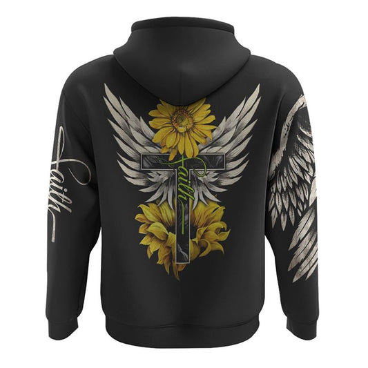 Painting Sunflower Cross Faith Wings All Over Print 3D Hoodie, Christian Hoodie, Christian Sweatshirt, Bible Verse Shirt