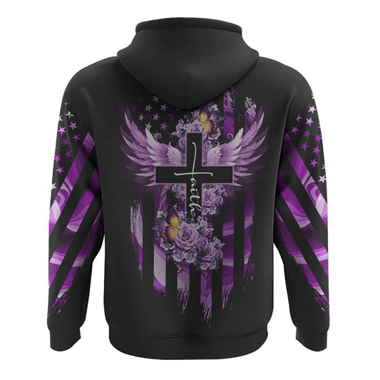 Purple Butterfly Rose Cross Faith Flag All Over Print 3D Hoodie, Christian Hoodie, Christian Sweatshirt, Bible Verse Shirt