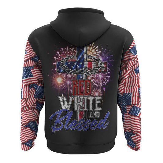 Red White And Blessed America Cross Independence Day All Over Print 3D Hoodie, Christian Hoodie, Christian Sweatshirt, Bible Verse Shirt
