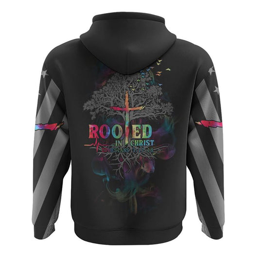 Rooted In Christ Colorful Smoke All Over Print 3D Hoodie, Christian Hoodie, Christian Sweatshirt, Bible Verse Shirt