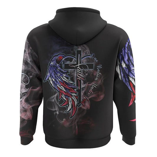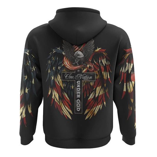 One Nation Under God Cross Wings Independence Day All Over Print 3D Hoodie, Christian Hoodie, Christian Sweatshirt, Bible Verse Shirt