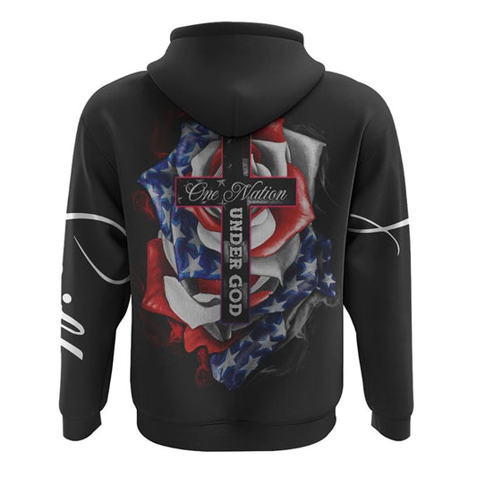 One Nation Under God Rose American Flag All Over Print 3D Hoodie, Christian Hoodie, Christian Sweatshirt, Bible Verse Shirt