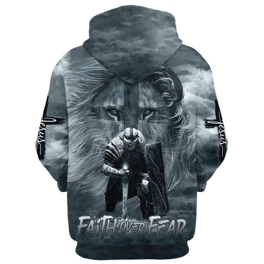 Faith Over Fear Hoodie Lion And Warriors Hoodies Men & Women, God 3D Printed Hoodie, Christian Apparel Hoodies
