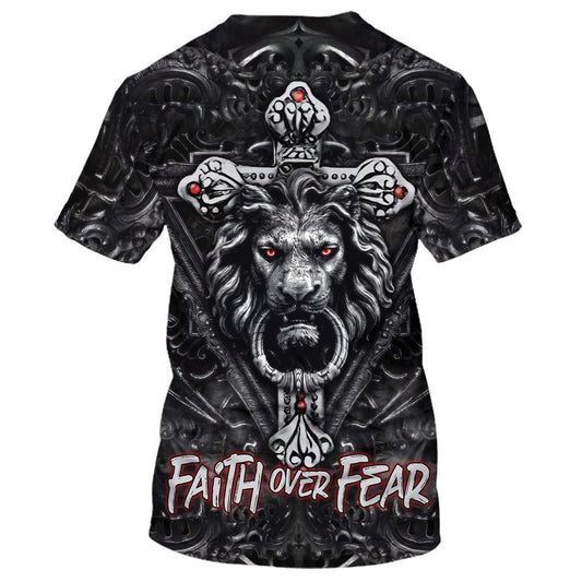 Faith Over Fear Gothic Lion Black All Over Print 3D T-Shirt, Gift For Christian, Jesus Shirt