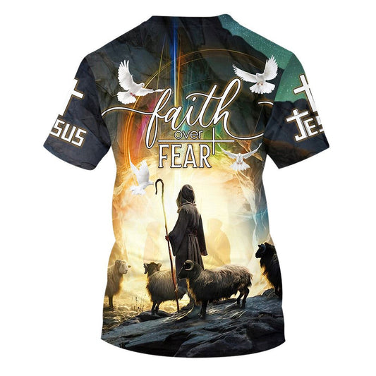Faith Over Fear Jesus And Sheep All Over Print 3D T-Shirt, Gift For Christian, Jesus Shirt
