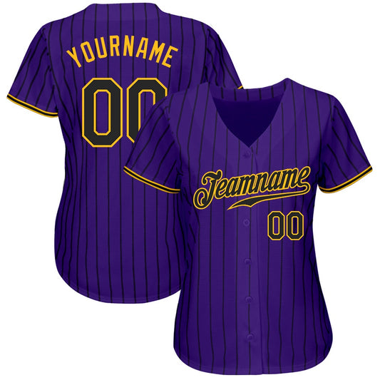 American Baseball Jersey, Custom Purple Black Pinstripe Black Old Gold Authentic Baseball Jersey, Baseball Jersey Name