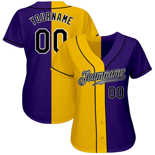 American Baseball Jersey, Custom Purple Gold Gray Authentic Split Fashion Baseball Jersey, Baseball Jersey Name