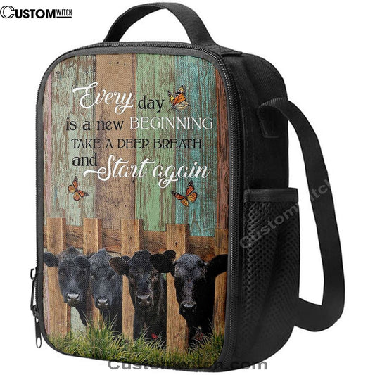 Angus Cow Everyday Is A New Beginning Lunch Bag, Christian Lunch Bag For School, Picnic, Religious Lunch Bag