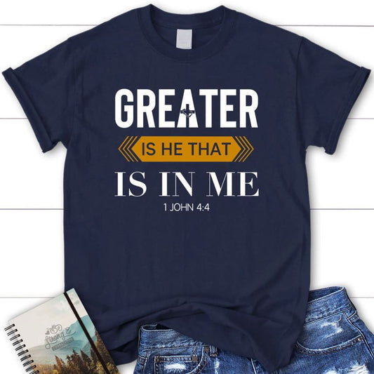 1 John 44 Greater Is He That Is In Me Christian T Shirt, Blessed T Shirt, Bible T shirt, T shirt Women