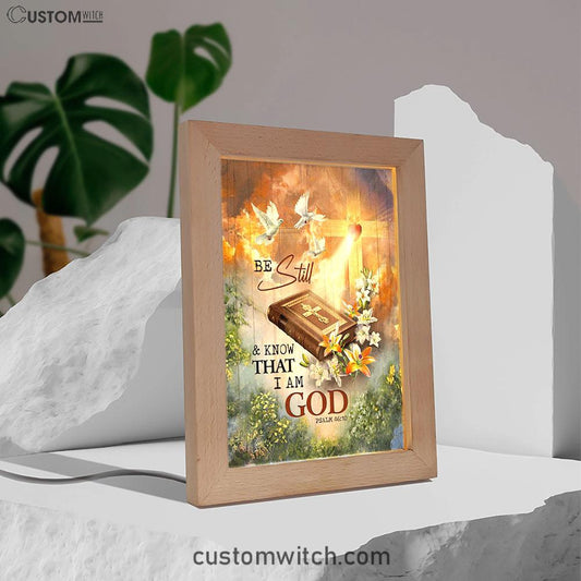 Be Still And Know That I Am God Frame Lamp - Pretty Lily Bible White Dove Frame Lamp Art - Christian Night Light