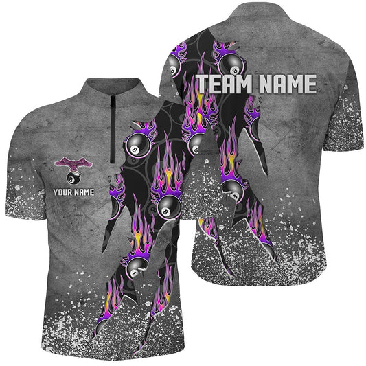 Billiard Polo Shirts, Custom Ball 8 Grey Grunge Billiard Shirts Best Custom Team Name Billiard Jerseysâ Purple, Billiards Team Shirts