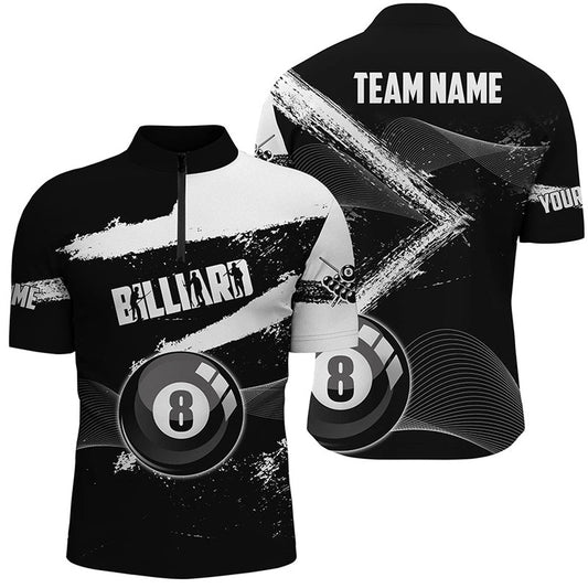 Billiard Polo Shirts, Custom Ball 8 Black Grunge Billiard Polo Shirts, Personalized 8 Ball Pool Billiard Jerseys, Billiards Team Shirts