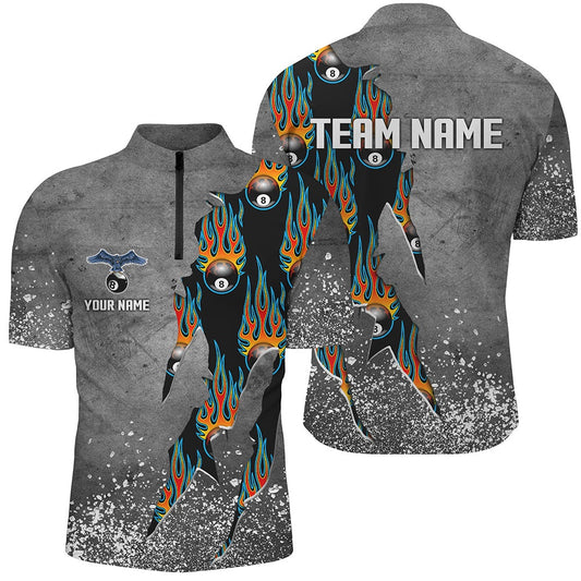Billiard Polo Shirts, Custom Ball 8 Texas Flag Grey Grunge Billiard Polo & 14 Zip Shirt Best Billiard Team Jersey, Billiards Team Shirts