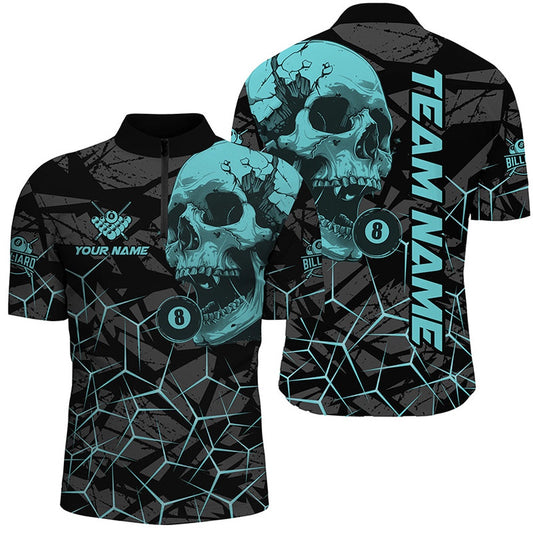 Billiard Polo Shirts, Funny Death Skeleton Ball 8 Fire And Cue Custom Billiard Shirts, Best 8 Ball Pool Jerseysâ Blue, Billiards Team Shirts