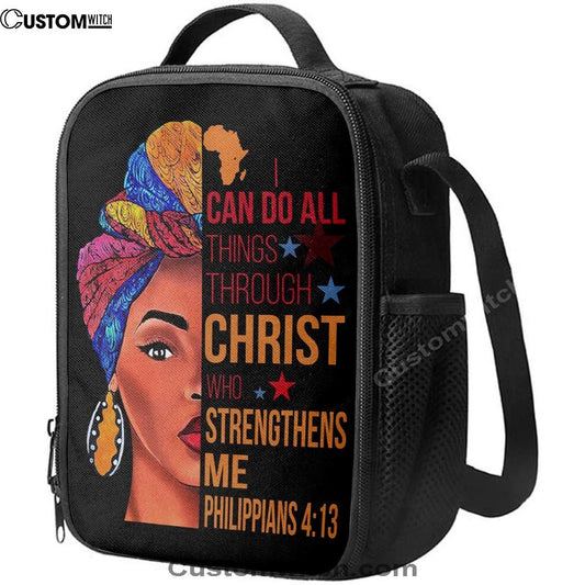 African American I Can Do All Things Through Christ Lunch Bag, Christian Lunch Bag For School, Picnic, Religious Lunch Bag