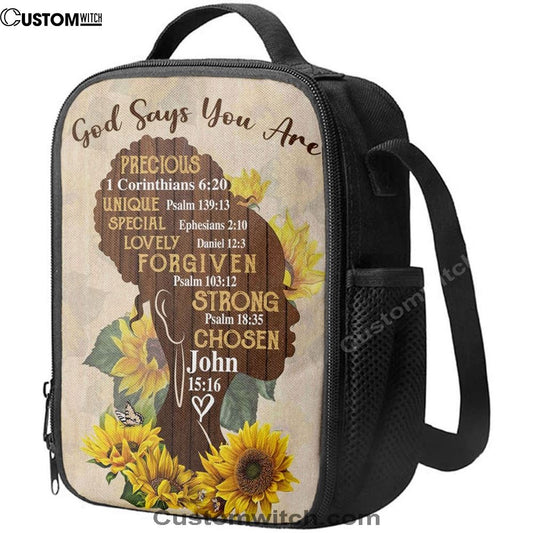 African American God Says You Are Sunflower Lunch Bag, Christian Lunch Bag For School, Picnic, Religious Lunch Bag