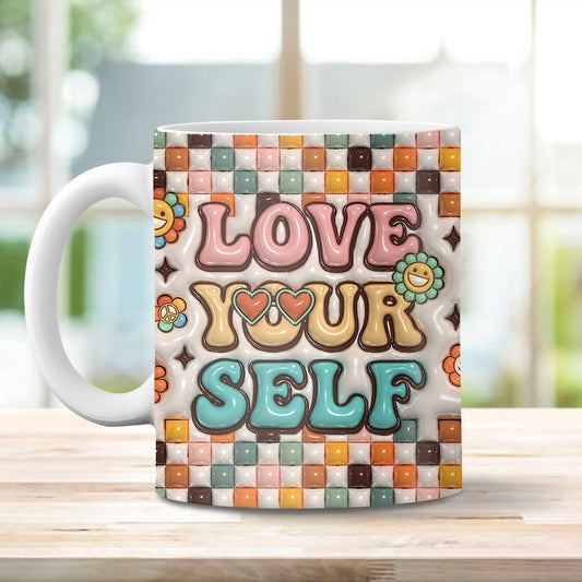 3D Inflated Love Yourself Mug, 3D Coffee Mug, Cute 3D Inflated Mug, Birthday Gift, Christimas Gift
