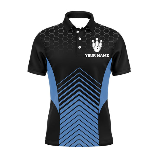 Custom Bowling Polo Shirts, Icy Blue Light Mens Polo Bowling Shirts Custom Black Team Bowling Jerseys For Men, Gifts For Bowlers
