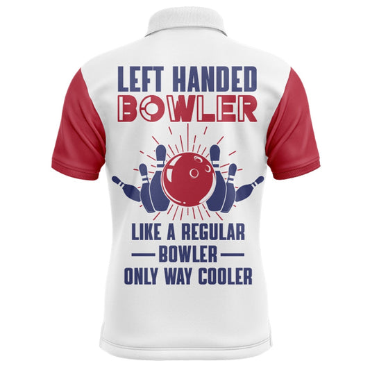 Custom Bowling Polo Shirts, Left Handed Bowler Custom Polo Bowling Shirt For Men, Red & White Bowling Jersey