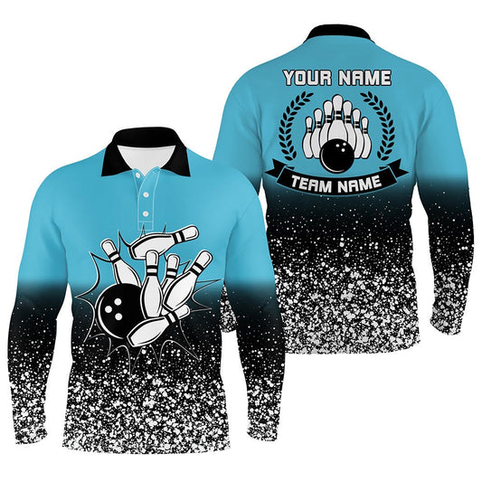 Custom Bowling Polo Shirts, Mens Polo Bowling Shirt Custom Bowling Ball Pins Team League Jersey, Personalized Bowling Gifts Blue
