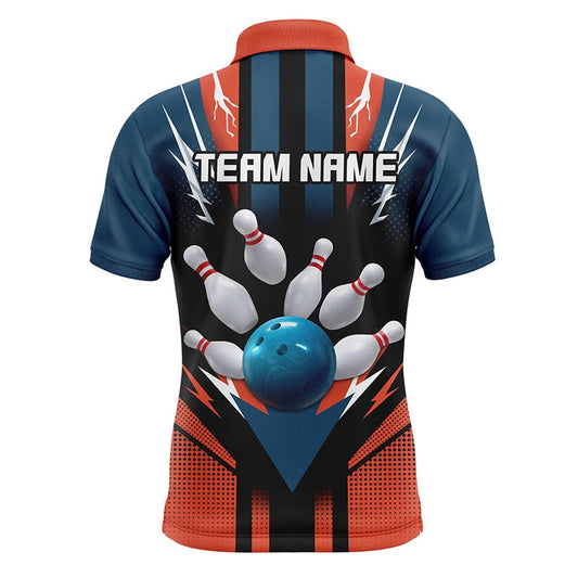 Custom Bowling Polo Shirts, Personalized Orange And Navy Bowling Shirt Polo Bowling Shirt For Men Bowling Team League Unisex Bowling Jerseys