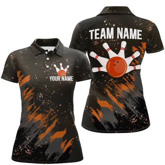 Custom Bowling Polo Shirts, Personalized Orange Camo Bowling Shirts Unisex Bowling Team Jersey Men Women