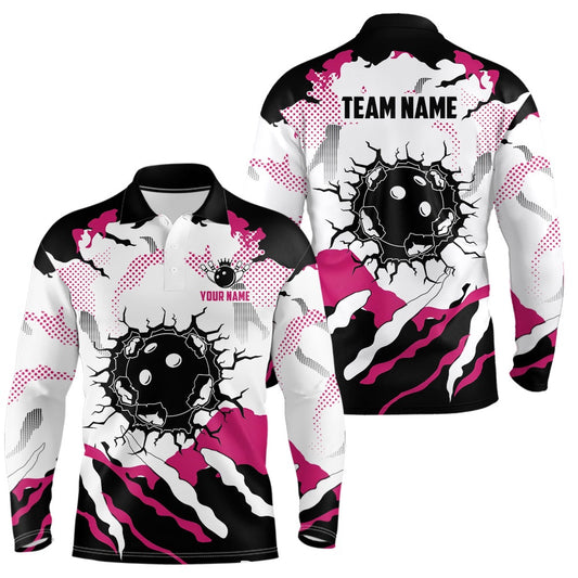 Custom Bowling Polo Shirts, Personalized Pink Bowling Team Jersey For Men & Women Custom Bowling Polo Shirt