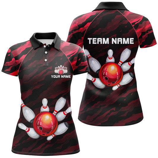 Custom Bowling Polo Shirts, Personalized Red Camo Bowling Shirts Unisex Bowling Team Jersey Men Women