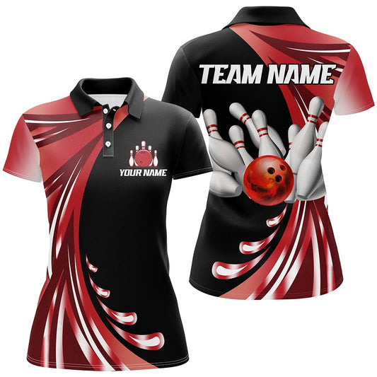 Custom Bowling Polo Shirts, Personalized Red Bowling Shirts Bowling Team Jersey Bowling League Outfits For Men And Women