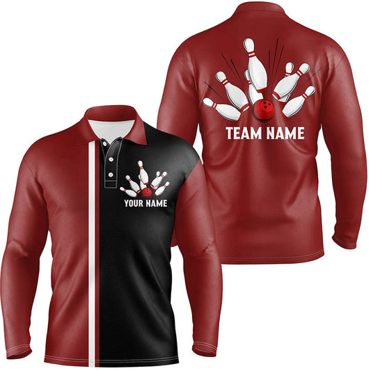 Custom Bowling Polo Shirts, Personalized Red Black Retro Bowling Polo Shirts For Men Custom Vintage Bowling Team Jerseys