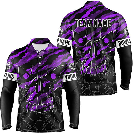 Custom Bowling Polo Shirts, Personalized Skull Bowling Polo Shirt For Men Custom Team'S Name Purple Camo Bowler Jerseys