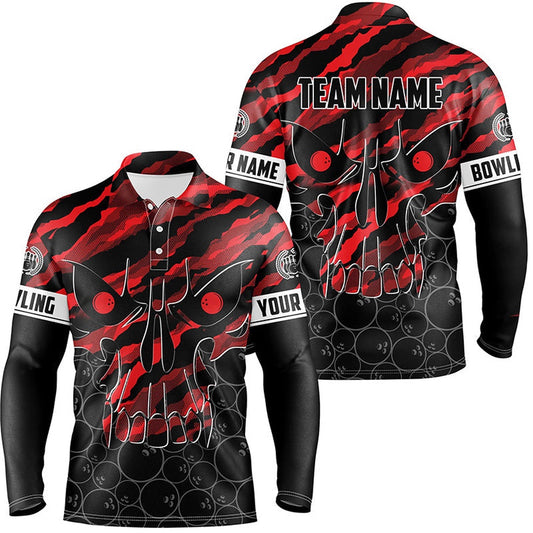 Custom Bowling Polo Shirts, Personalized Skull Bowling Polo Shirts For Men, Bowling Pin Custom Team'S Name Bowler Jerseys