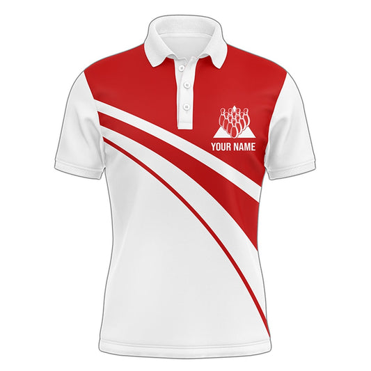 Custom Bowling Polo Shirts, Red&White Bowling Polo Shirt Funny Personalized Bowling Shirt Men Custom Bowling Jersey For Team