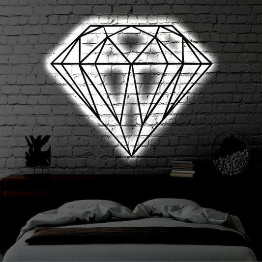 Custom Diamond LED Metal Art Sign, Light Up Geometric Diamond Metal Sign, Anniversary Gift, Home Decor Sign, Outdoor Sign, Wall Hanging Art