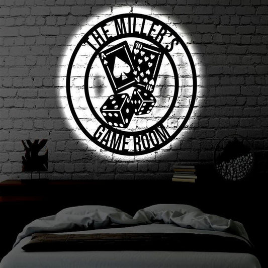 Custom Game Room LED Metal Art Sign, Light Up Casino Metal Sign, Anniversary Gift, Home Decor Sign, Outdoor Sign, Wall Hanging Art