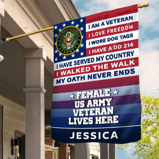 Custom US Army Flag, Flag For A Female Veteran I Love Freedom, US Army Veteran Flag, Army Retired Flag