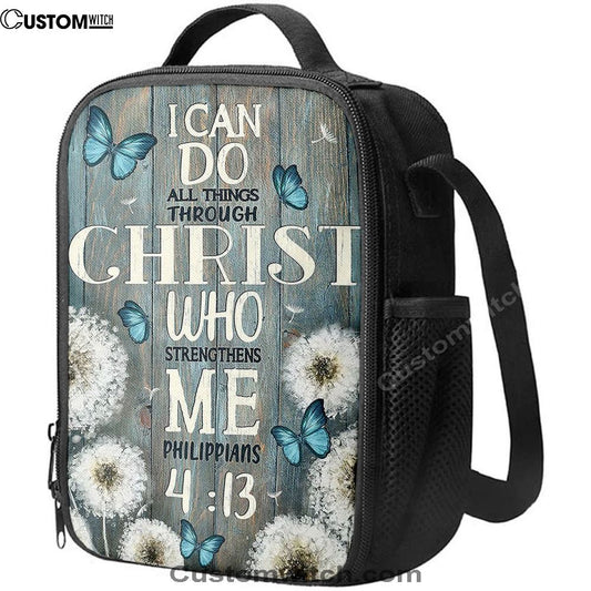 Dandelion Butterfly I Can Do All Things Through Christ Who Strengthens Me Lunch Bag, Christian Lunch Bag For School, Picnic, Religious Lunch Bag
