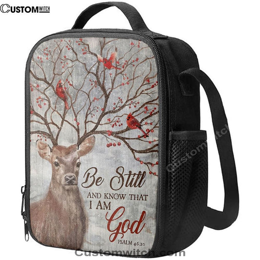 Deer Cardinal Be Still And Know That I Am God Lunch Bag, Christian Lunch Box, Christian Lunch Bag For School, Picnic, Religious Lunch Bag